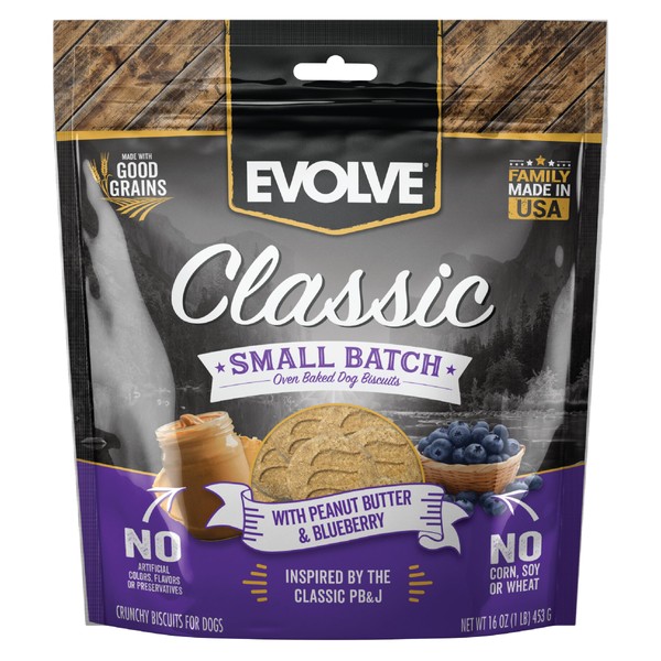 Evolve Classic Small Batch Oven Baked with Peanut Butter and Blueberry Biscuits Dog Treats, 16oz