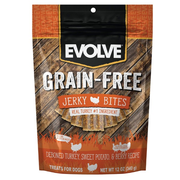 Evolve Grain Free Turkey, Pea, and Berry Jerky Bites Dog Treats