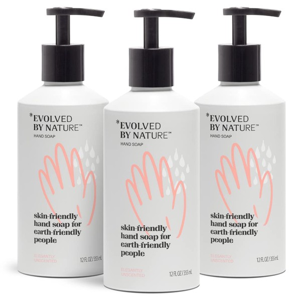 Evolved By Nature Liquid Hand Soap, 12 Oz (Pack of 3), Unscented, Biodegradable Formula, Reusable Aluminum Dispenser