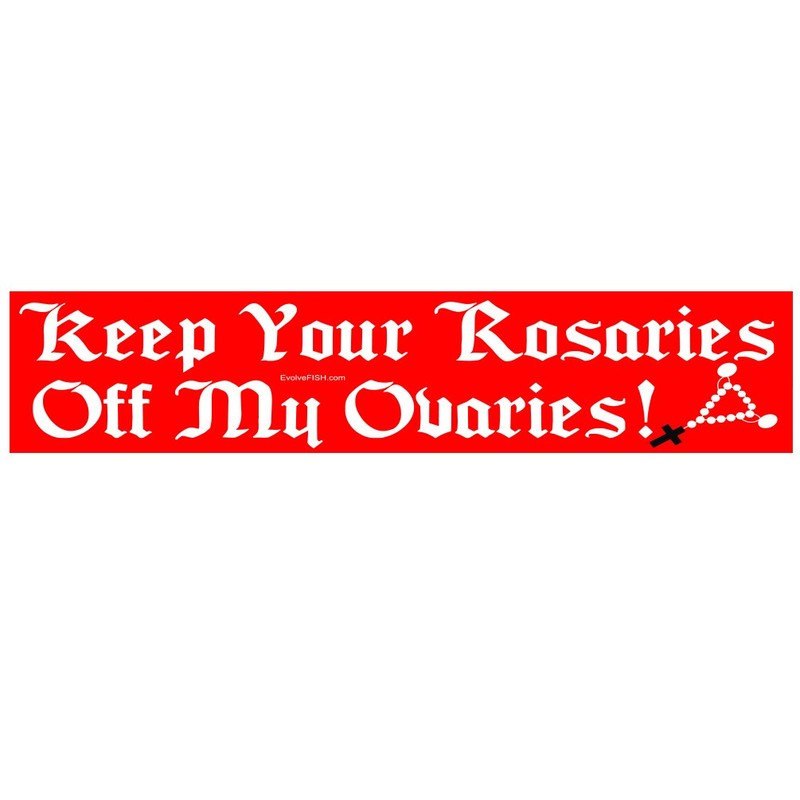 EvolveFISH Keep Your Rosaries Off My Ovaries Bumper Sticker 11" x 3"