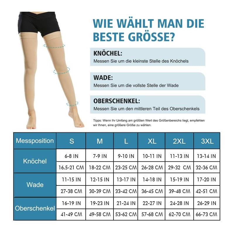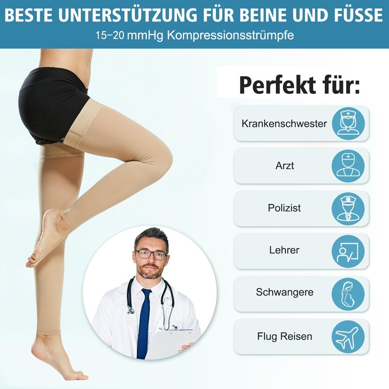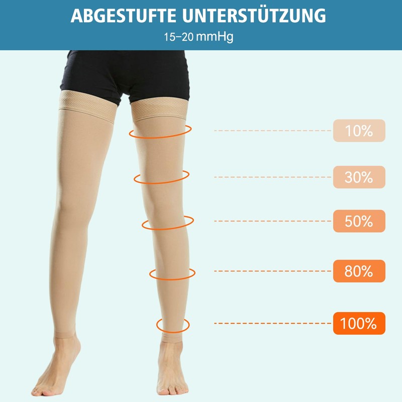 - Effektive Therapie: 15-20 mmHg abgestufte thrombosestrümpfe herren/damen, die von den Knöchel bis zu den Oberschenkel designt sind, passen sich Ihren Beinen an, ohne zu rutschen oder zu zittern, und halten Sie in einer guten Leistung. Medizinische Kompressionsstrümpfe helfen, Schwellungen, Ödeme, TVT-Venengerinnsel und Blutansammlungen zu verhindern, sorgen für eine positive Durchblutung und Beingesundheit. Sie werden die Veränderung bemerken, wenn Sie sie jeden Tag einige Stunden tragen.