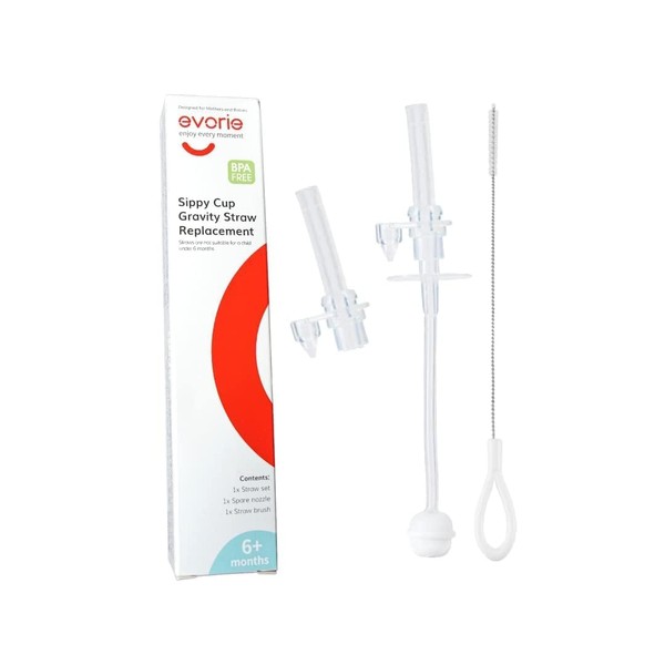 Evorie 360 Weighted Straw Replacement for 7 Oz Sippy Cup, Includes Straw Cleaning Brush and Spare Nozzle (Pack of 1)