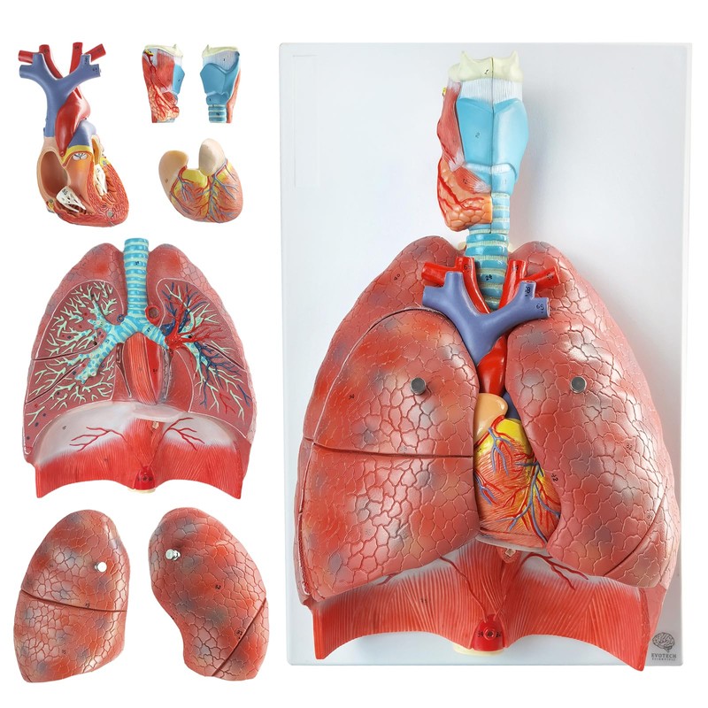- ▲Medical Anatomical Larynx, Heart and Lung Model - This is a 7 Parts Life Size Human Respiratory System Model that includes the following detachable parts: larynx (2), lung (2), heart (2), base with air tube,arteries and veins, aorta pulmonary artery esophagus. Easy assembly and Parts Securely fitting to each other.