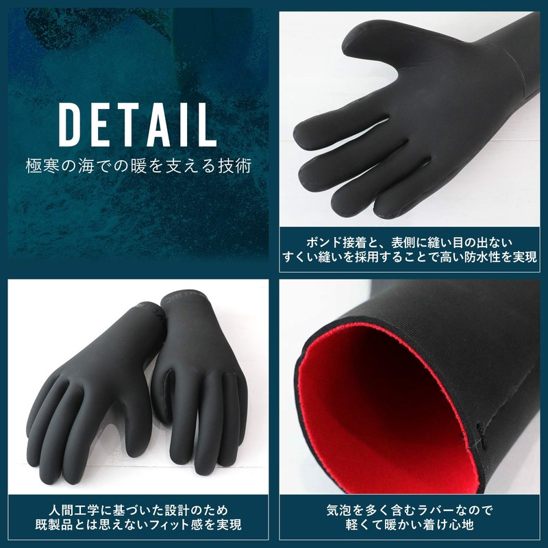 - EVOTRIC Skin Surfing Gloves Material: Neoprene, 0.08 inch (2 mm) / Back > Heat Max (Far Infrared Thermal Brushed)