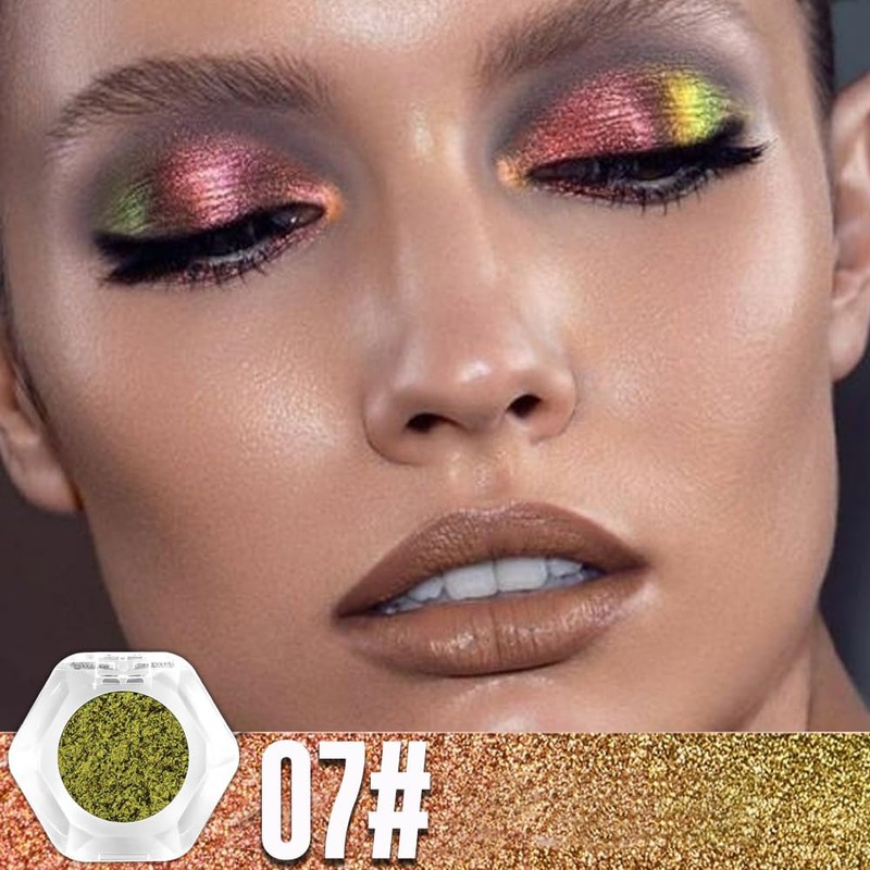 evpct Yellow Green Shimmery Eyeshadow Palette, Colorful Glitter Loose High Pigment Shimmer Metallic Rainbow Eyeshadow Makeup Pallet, Yellow Green Holographic Multichrome Eyes Highlighter 07#