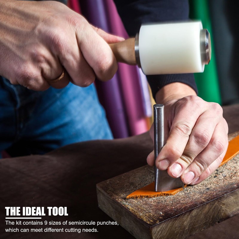 - Precision Crafting Made Easy: Elevate your leathercraft with EVTSCAN's 9-Piece Half Round Cutter Punch Set. Expertly designed in sizes from 10mm to 50mm, effortlessly create curved edges for leather belts, bags, and wallets. Perfect for achieving professional, precision cuts.