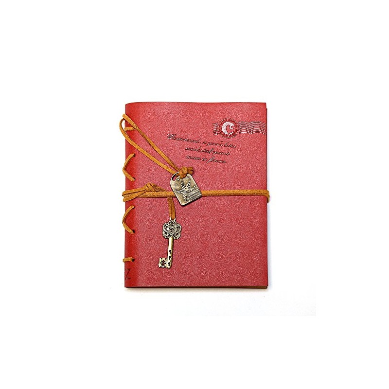EvZ Journal Diary String Key Retro Vintage Classic Leather Bound Notebook, Red