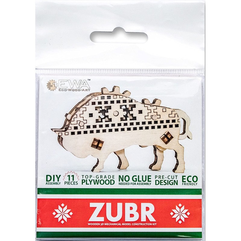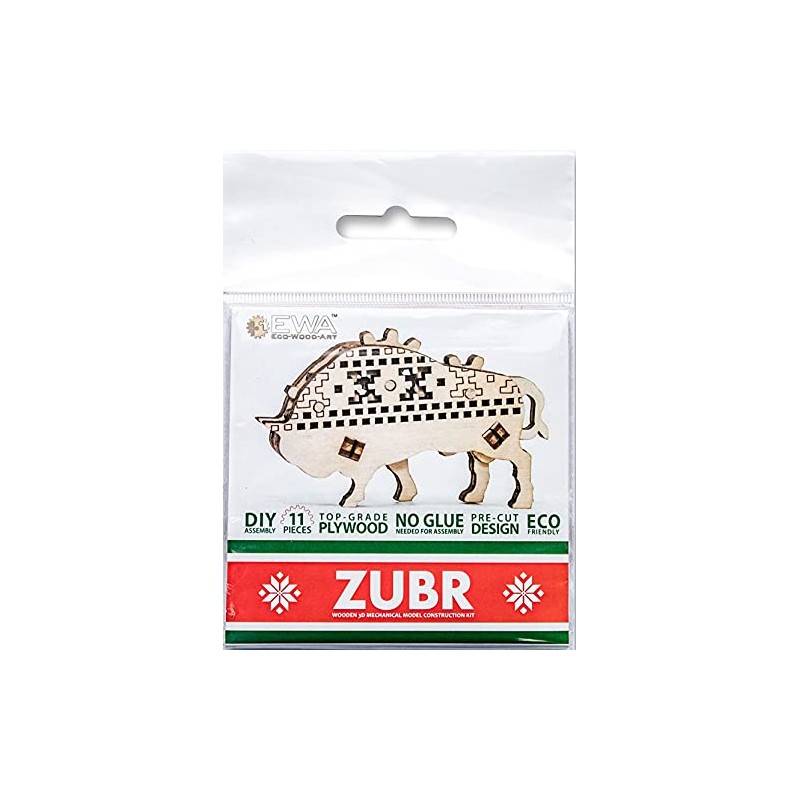 EWA Eco-Wood-Art EWA: Zubr Eco-Wood Art 3D Wooden Puzzle EWA DIY Kit, Self-Assembly, No Glue Required, 11 Pieces The Mechanical Anti-Stress 3D Puzzle Toy Made of Natural Materials