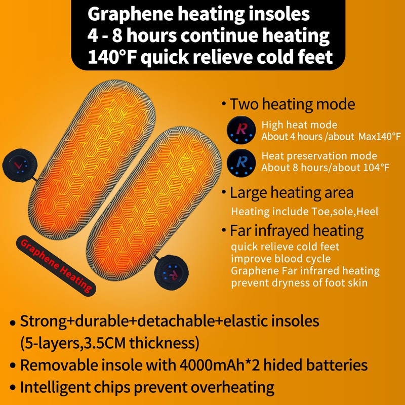 - 🔥INDEPENDENT GRAPHENE INSOLES: The heated slippers are contain a pair of independent insoles that can be removed. The insole is composed of 6 layers of materials, which are sturdy, durable, safe and stable. The two layers of graphene fabric on the surface have special insulation functions. The graphene heating core can provide rapid heating and long-lasting temperature. The 3-layer EVA strong protective structure ensures safe use.