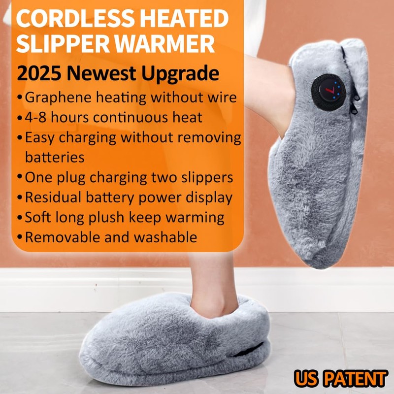 - 🔥Ewarmer 2025 NEWEST CORDLESS HEATED SLIPPERS, without wires and plugs, are powered by polymer lithium batteries, and can walk freely indoors while heating for your cold feet. you are free to enjoy the warmth anytime