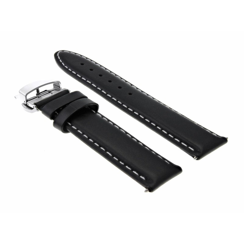 Ewatchparts 22mm Smooth Leather Band Strap Deployment Clasp Compatible With Montblanc Timewalker Black With White Stitching