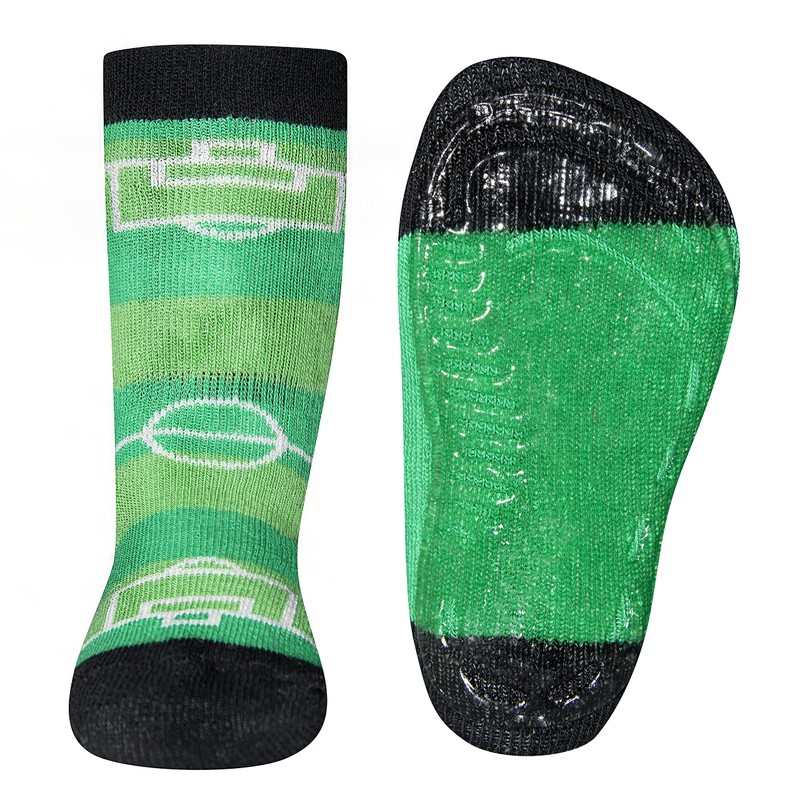 EWERS Pack of 2 football stopper socks SoftStep socks with non-slip sole for boys, non-slip socks with rubber sole, 2 pairs of non-slip children's socks for boys, Grass Green / Light Silver