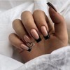 ewku Press On Nails Long - French Style Black Edge Heart Stick On Nails With Glue