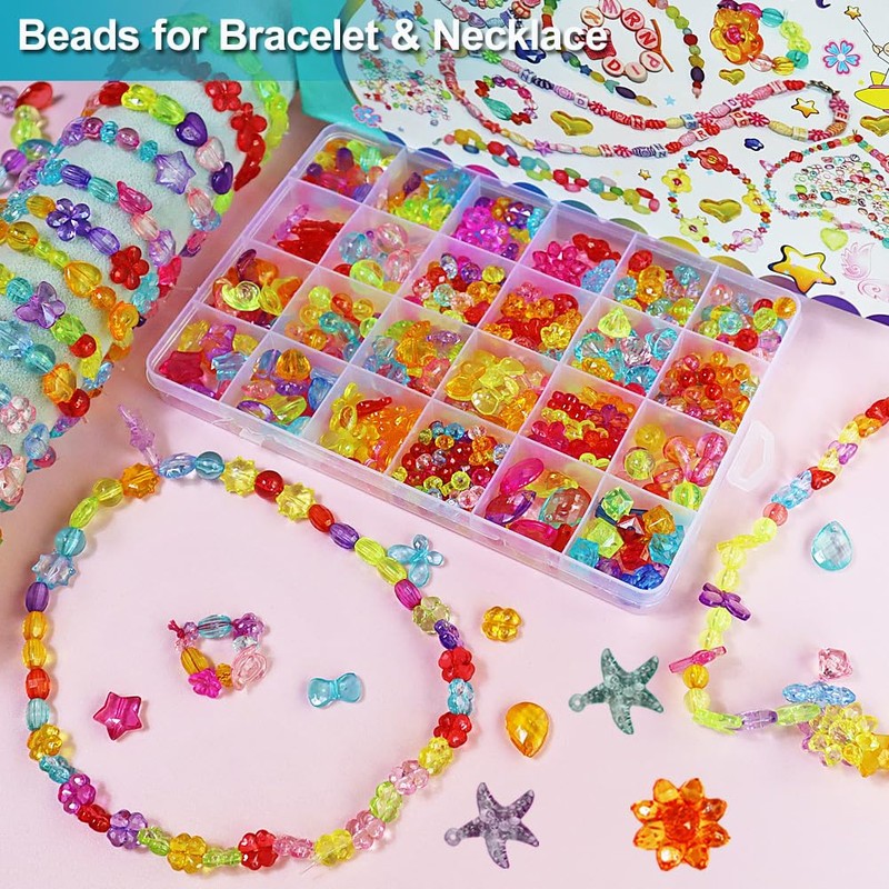 Ewparts Bead Set Jewellery Set Girls Beads for Threading from 4 24 Colours Beads for Bracelets DIY Necklaces Beads Set Including Bracelet Cord Elastic Bracelet (Beads Set 2)
