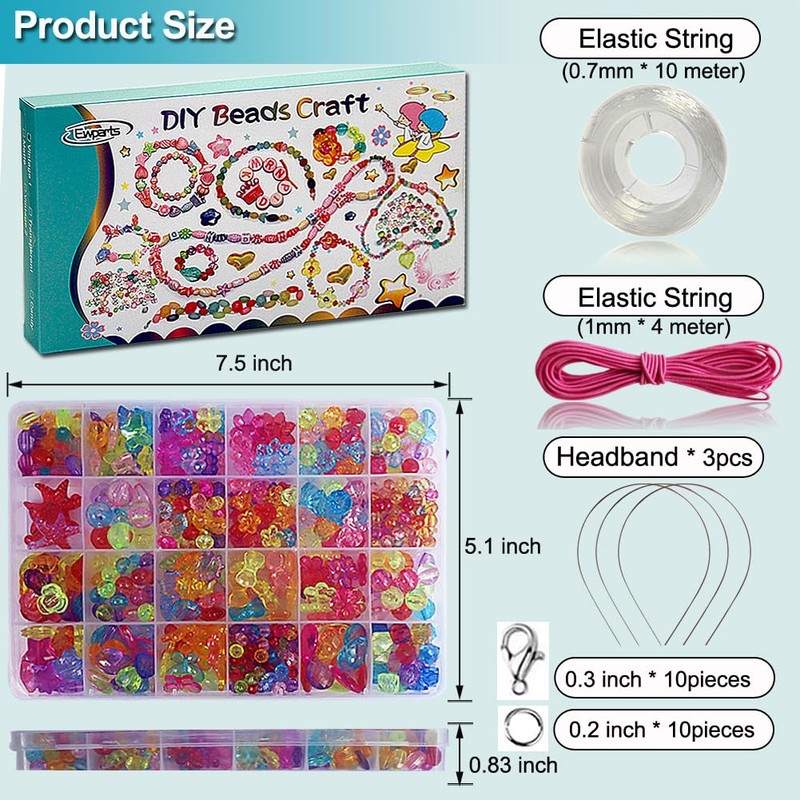 Ewparts colourful bead bracelet bead kit is a good teaching tool to help children improve hand-eye coordination, improve their practical skills, play better with the child's imagination and train children's creativity and logical thinking.