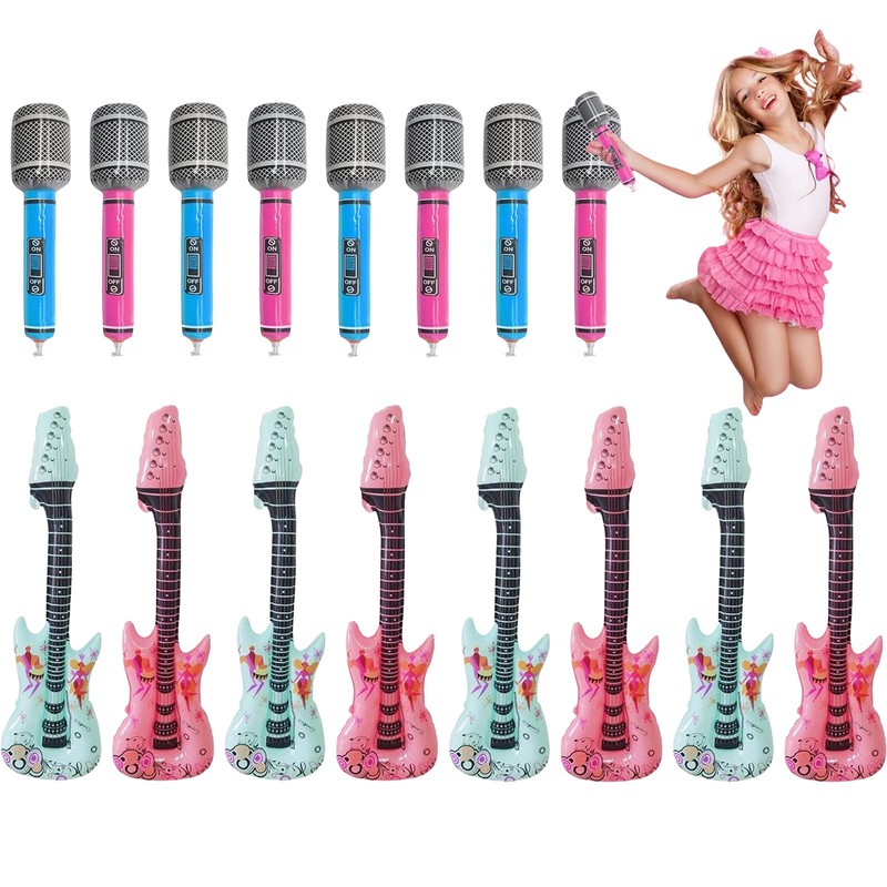 The set includes 16 pieces party bag fillers, 4 blue inflatable guitar, 4 rose red inflatable guitar, 4 blue inflatable microphone, 4 blue inflatable microphone, these props will make your photos stand out and create unforgettable moments