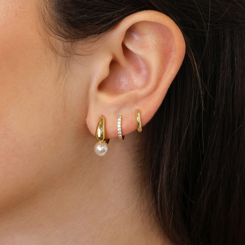 - Gold Pearl Earrings Set Design : We perfectly match the combination of thin hoop earrings and thick hoop earrings to design the perfect gold earrings set for a variety of ear holes, These 3 pairs of women's small hoop earrings can be worn alone or stacked to create a layered and unique style
