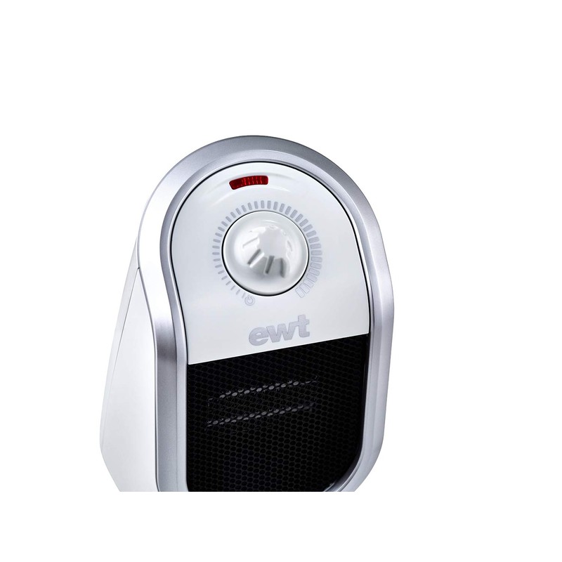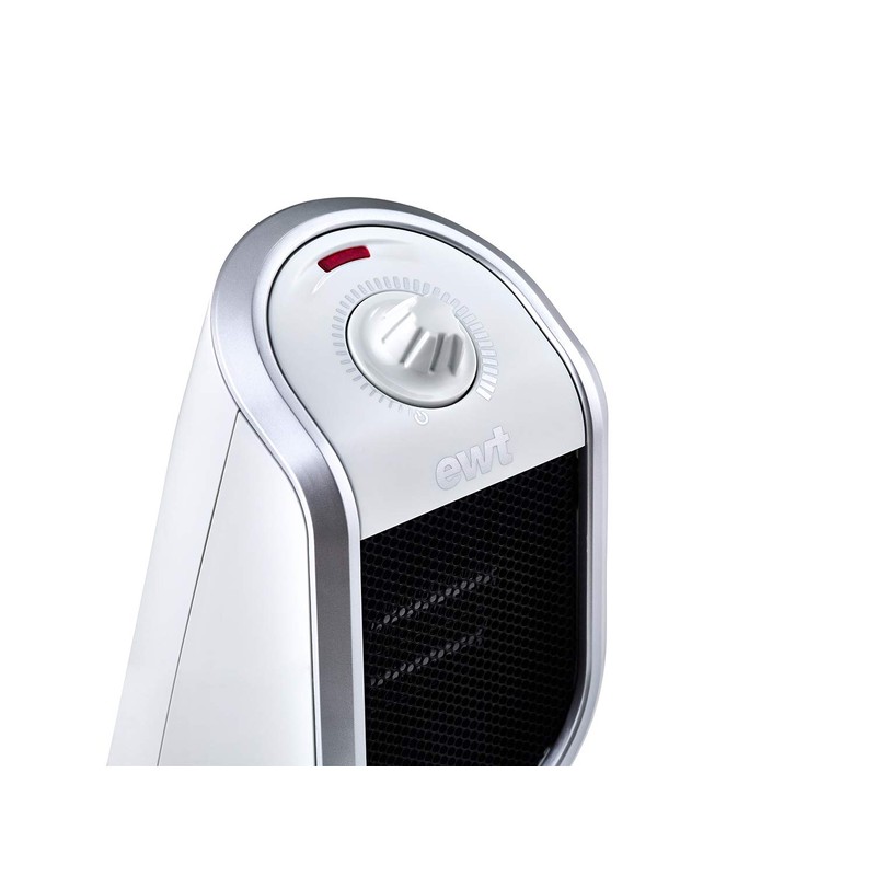 - Powerful mini fan heater: The EWT electric ceramic heating element works almost silently and emits a pleasant heating output of up to 250 W, which is continuously regulated by thermostat.
