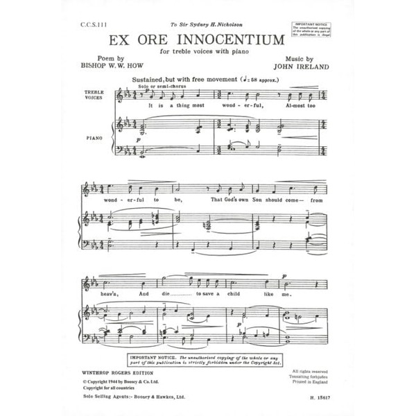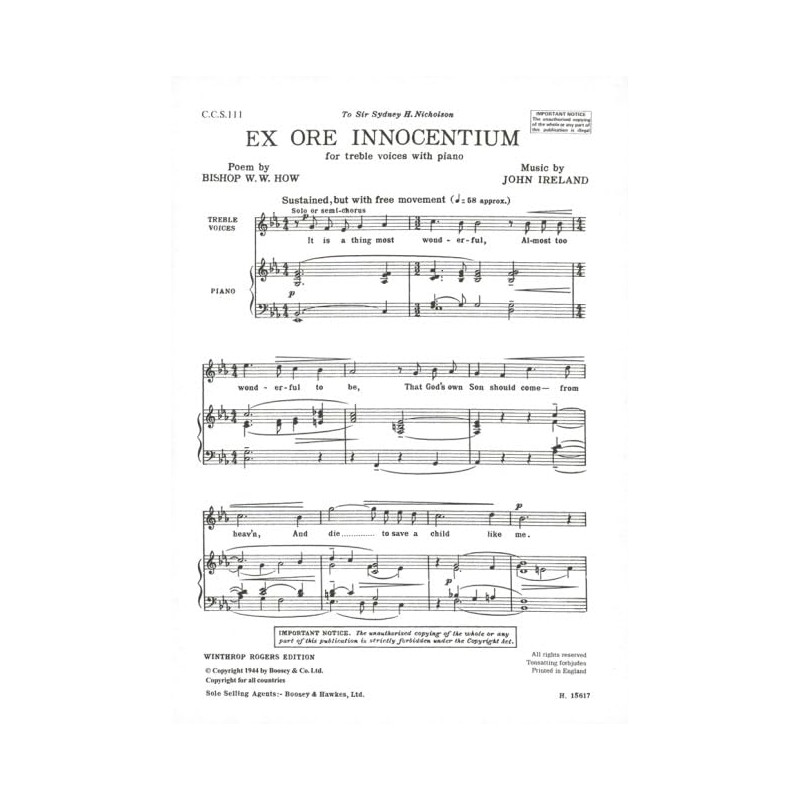 Ex Ore Innocentium: female choir or children's choir and piano. Partition de chœur.