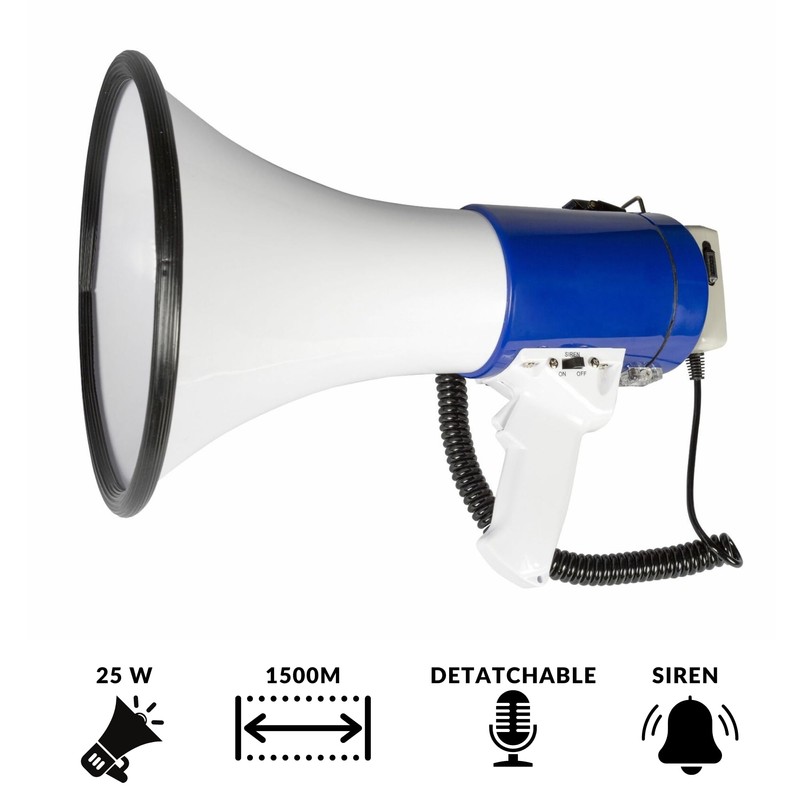 - Ex-Pro Handy Loud compact megaphone with built-in Siren, &Whistle, detachable Microphone