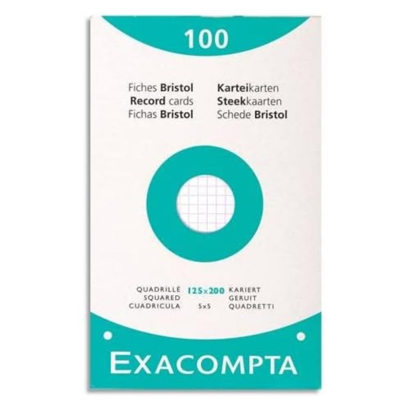 Exacompta 100 x 125 x 200mm 5 x 5mm Squared Punched White Index Cards 13603E