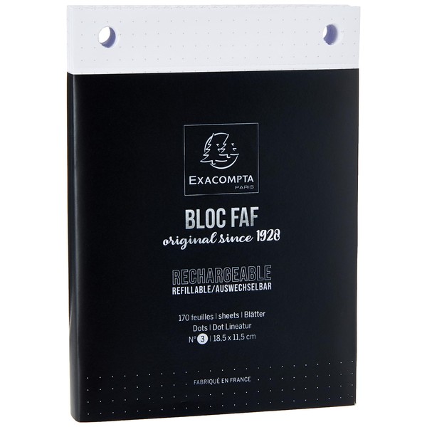 - Pad of 170 sheets, white paper with 70 g, micro-perforated on the head for easy one-handed tearing. Ruling dots: discreet 5mm dots, for more precise notes, drawings or sketches.