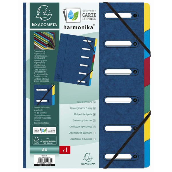 - Manila cardboard 425 g with elastic and expandable harmonica spine, 6 compartments with punched out windows, Nature Future, for DIN A4 format