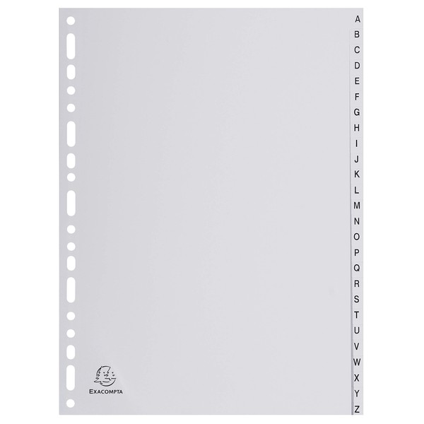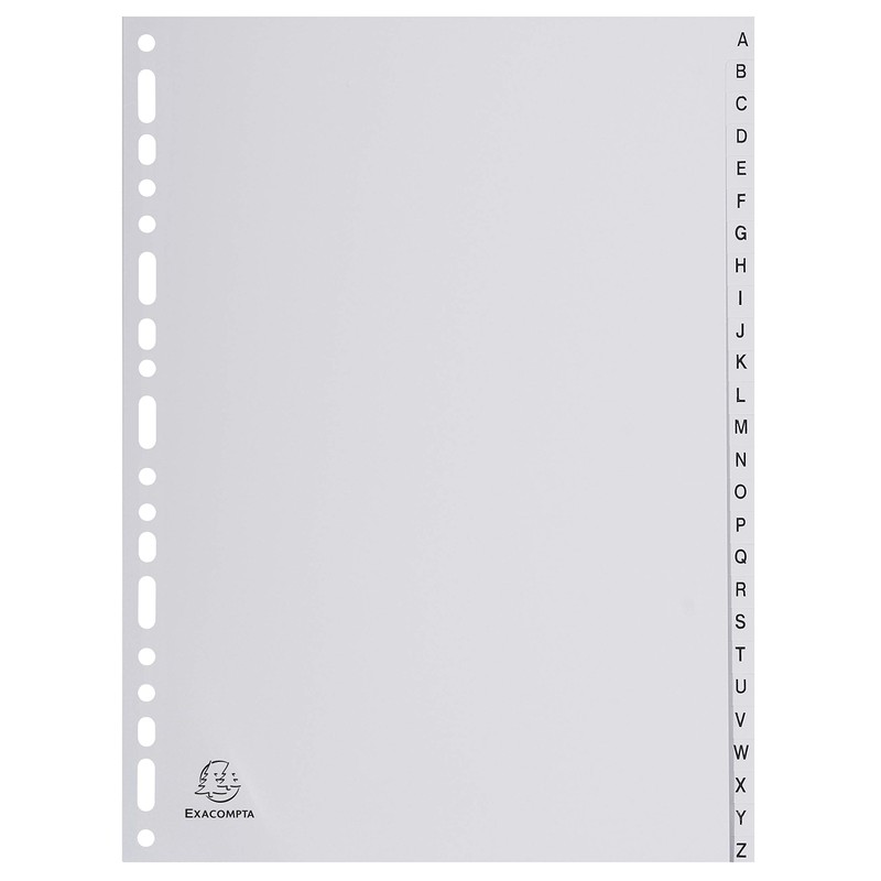 Exacompta - Ref 1726E - PP Printed Indices - For Use With A4 Documents, 0.1mm Polypropylene, Pre-Punched, Soft & Tear Resistant - 26 Divider Parts (A-Z) - Grey