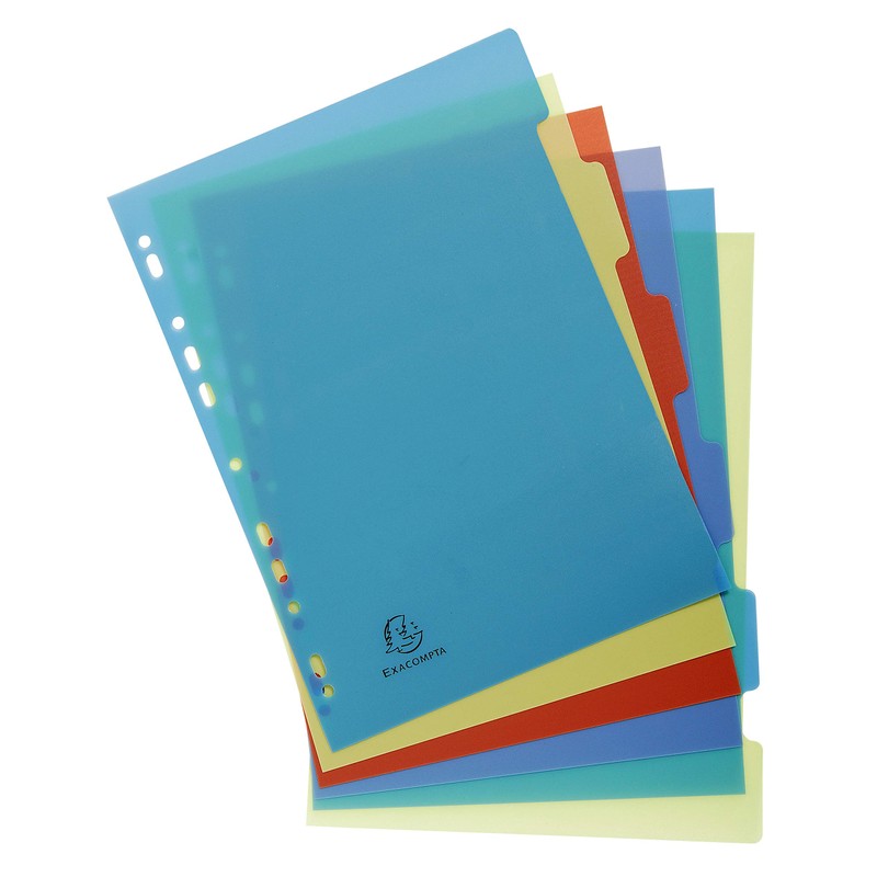 Exacompta - Ref 2706E - Forever Collection - 100% Recycled PP Dividers - Suitable for Use With A4 Documents, 6 Part Dividers, Recycled Polypropylene - Multi-Coloured