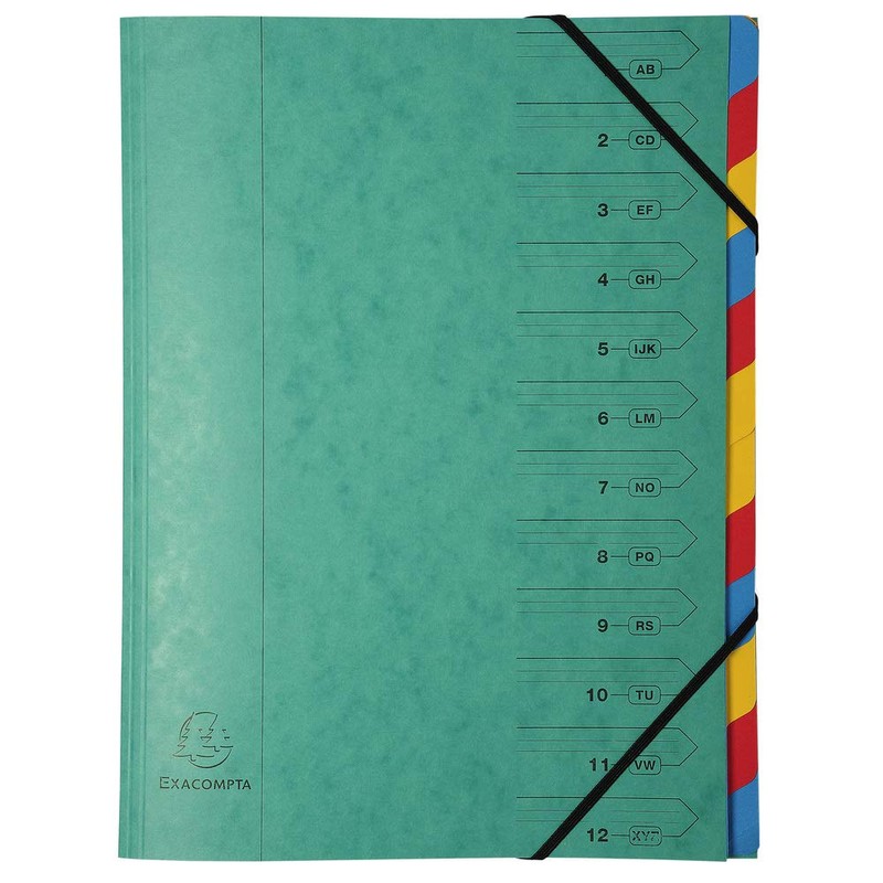 Exacompta - Ref 54120E - Stapled Spine Multipart File - 245 x 320mm in Size, Suitable for Storing A4 Documents - 12 Tabbed Sections - Covers with Multi-coloured Tabs (Pack of 8)
