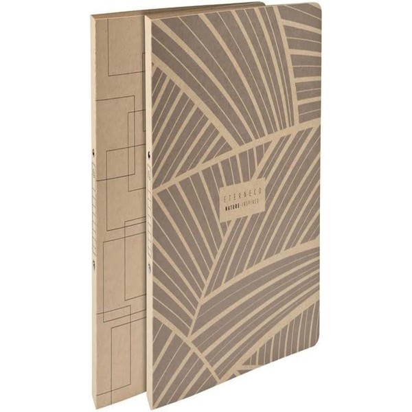 - ETERNECO - Recycled glossy card exterior covered with a vegetable oil coated paper which provides excellent water protection - The cover is thus protected as a plastic material would be, while remaining of natural manufacture. Flexible, this binder is ideal for everyday use, easy to handle, nomadic, suitable for school or professional use. Thickness 5.10th - 400 g.m² - Printed spine label