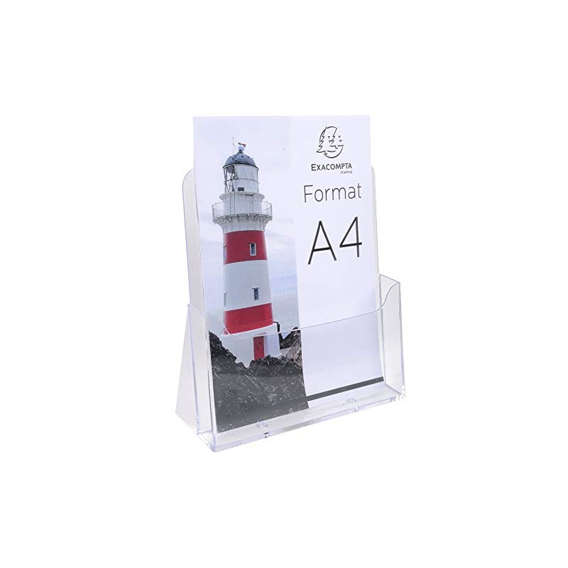 Exacompta – Ref. 74058D - 1 flyer dispenser on table - 1 compartment - Monobloc - Dimensions: Prof.23.5 x width.8.5 x Height.24.7 cm - Format to file A4 - Crystal
