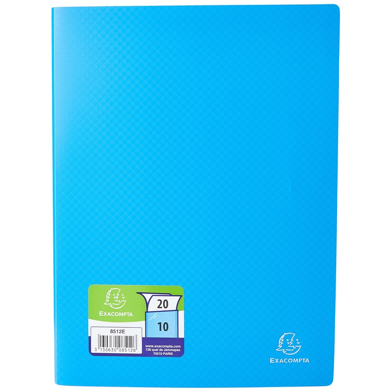 Exacompta - Ref 8512E - Soft PP Display Book - Suitable for A4 Documents, Made from Polypropylene, Lightweight, 10 Pockets, 20 Viewing Pages - Blue Cover
