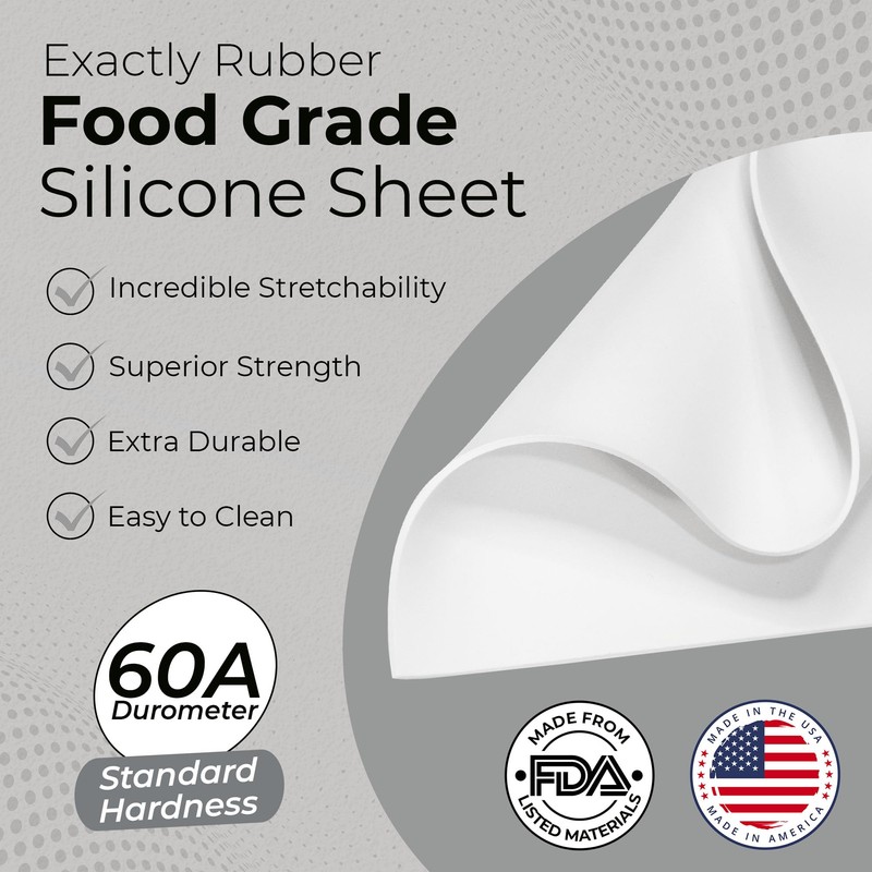 Exactly Rubber - White Silicone Sheet, 60A Durometer Silicone Mat, Food-Grade Rubber Mat with -80 to 450°F Temperature Resistance, 400% Elongation, Silicone Placemat Made in The USA, 1/16 x 12” x 36”