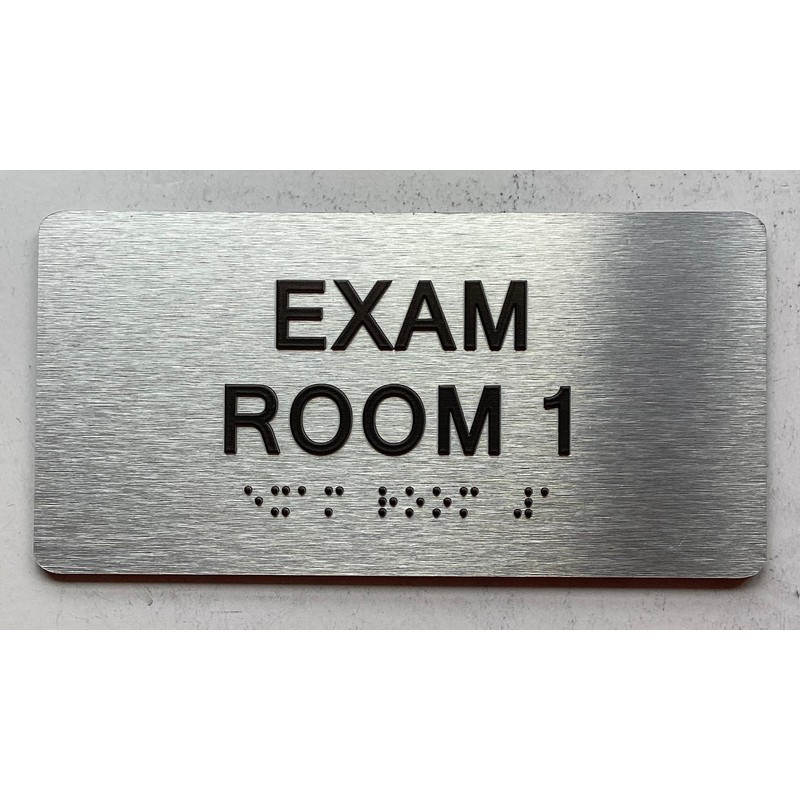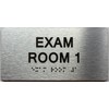 EXAM ROOM signS with Raised letters/Image & Grade 2 Braille - Includes Red Adhesive pad for Easy Installation (4" W x 8" H,Brushed Aluminum/silver) - The park Ave Line (EXAM ROOM 1)