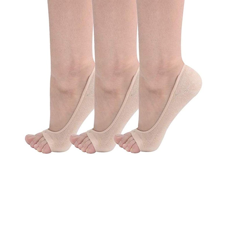 Exceart 3 Pairs of Peep Toe Socks Open Toe Socks Invisible Liner Breathable Liner Socks No Show with Nonslip Gel Heel Grip (Skin Color)