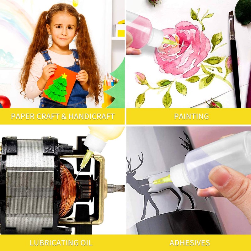 - Reutilizable, fácil de usar y exprimir, lavable, se puede rellenar con pegamento, pintura u otros líquidos.