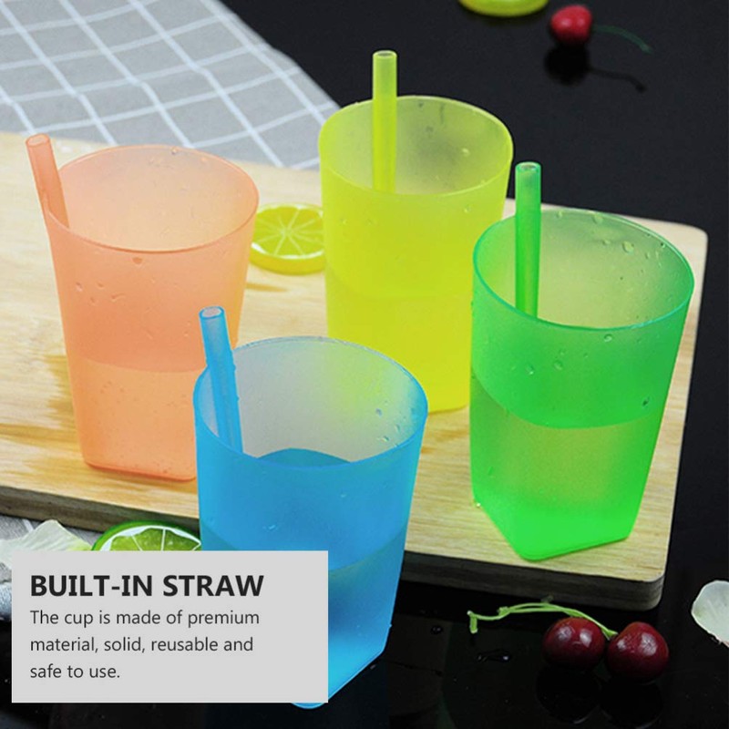 EXCEART Pack of 6 Colourful Sippy Cups with Built-in Straw for Toddlers Children Stackable Plastic Cup with Straw