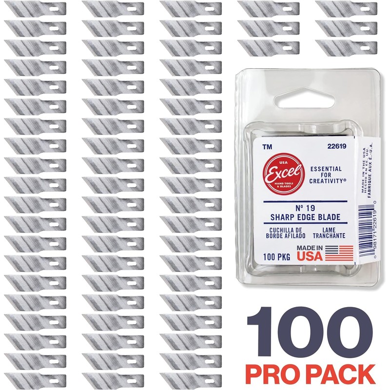 Excel Blades #19 Angled Wood Chisel Blades – 100-Pack 1-Inch Carbon Steel Craft Knife Replacement Blades – Ideal for Cutting, Chiseling, and Precision Carving - Made In USA