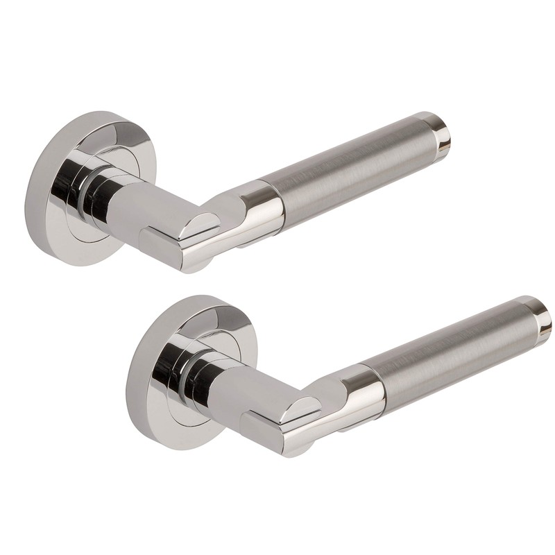 Excel DH3685 Seriphos Passage Door Handles on Round Rose, Duel Polished/Satin Chrome
