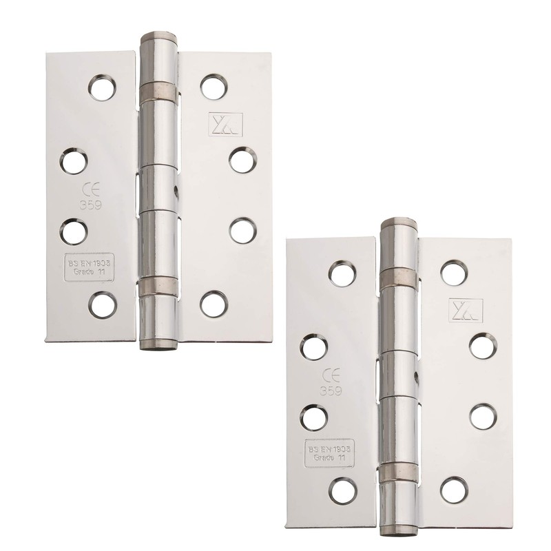Excel XL866 Pair of 4" Grade 11 Door Hinges, Polished Chrome