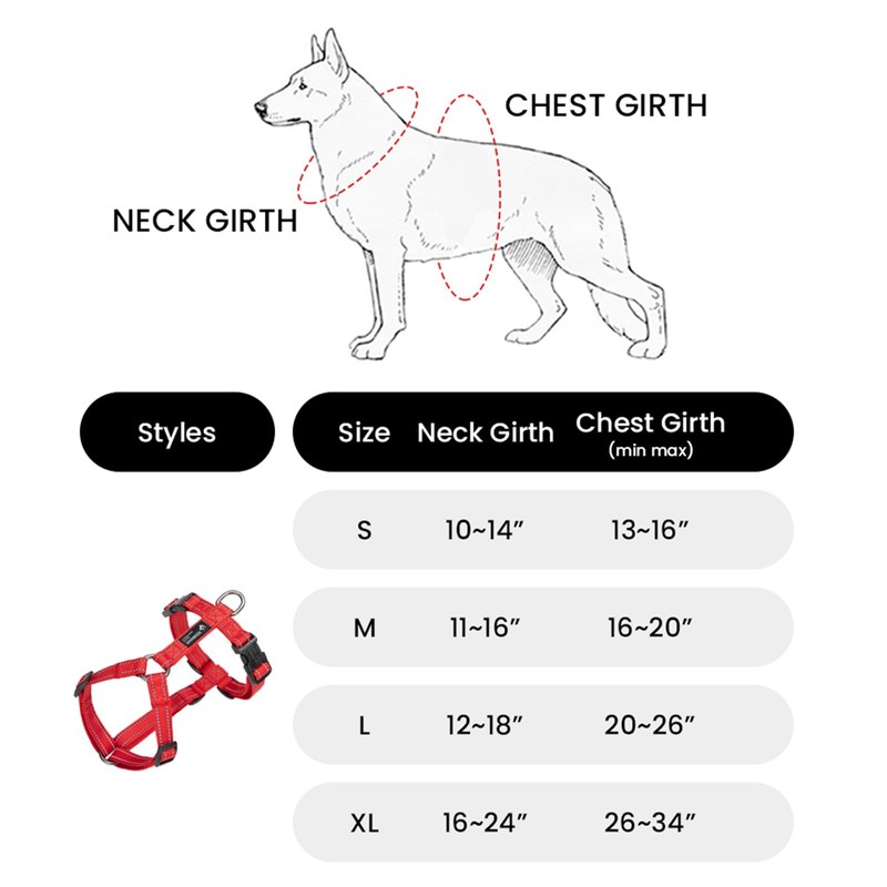 - 【Proper Harness Size】 To get the correct sizing of your dog, use a soft measuring tape and measure around the largest part of the dog's chest. Choose the smallest size that fits within that measurement.