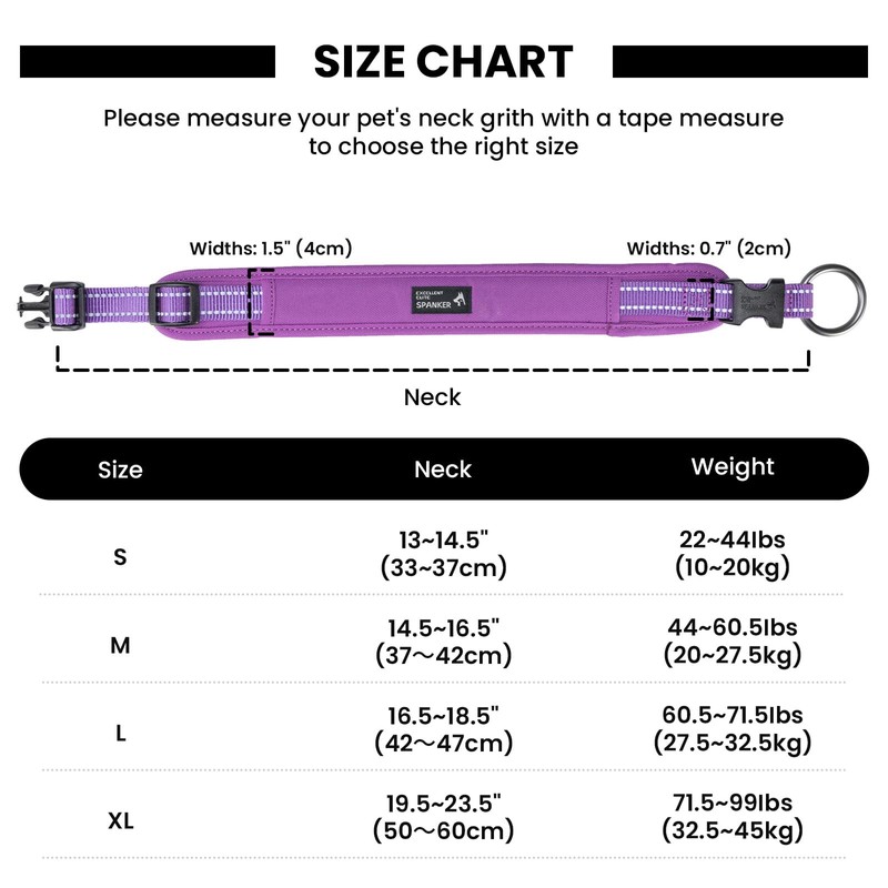 • Suitable for all breeds and sizes: the wide dog comfort collar has 7 colours and 4 sizes to choose from. Please measure your dog's neck circumference before ordering. Please bend 2 fingers between collar and dog neck for comfort.