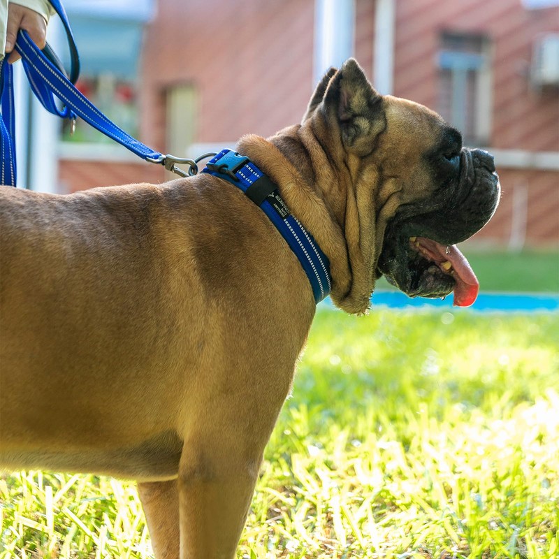• Durable materials: our padded dog collar made of tear-resistant 900D nylon material with heavy stitching, the product is ultra-durable. The interior features soft, breathable air mesh padding, wider and thicker design effectively distributes pulling pressure, so your dog's neck stays comfortable while being active or pulling on the leash.