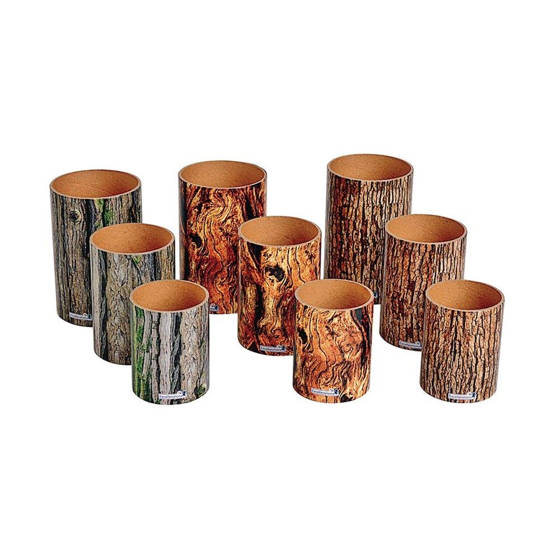 - Bark Blocks, set of 18, 3 of each size: 6 inches H x 3-3/4 inches D, 5 inches H x 3-1/4 inches D, 4 inches H x 2-3/4 inches D