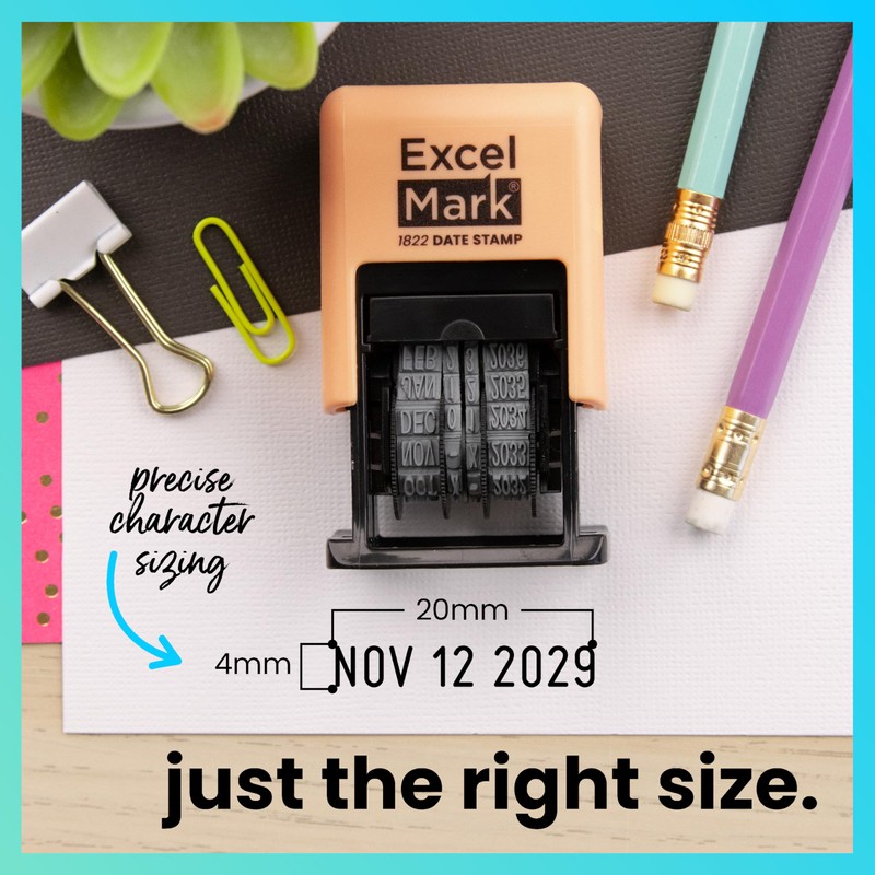 ExcelMark 1822 Date Stamp – Perfect for Shipping, Receiving, Expiration and Due Dates (Black Ink, Peach Mount)