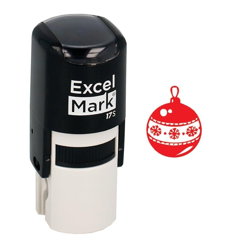 ExcelMark Self-Inking Christmas Rubber Stamp - Ornament - Red Ink