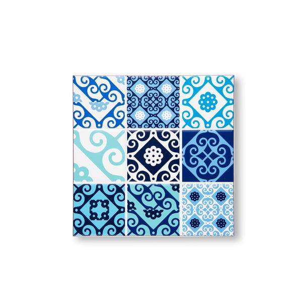 Excelsa Maiolica Blue Coaster, Ceramic Dolomite and Cork, 16 x 16 cm