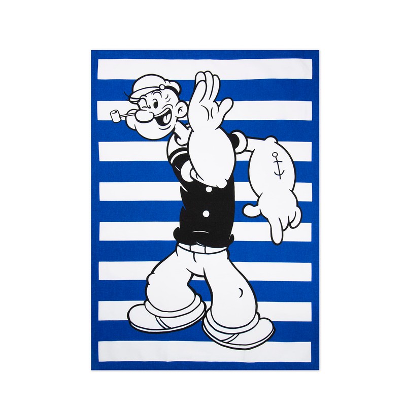 - Front with popeye motif, back white and blue trim
