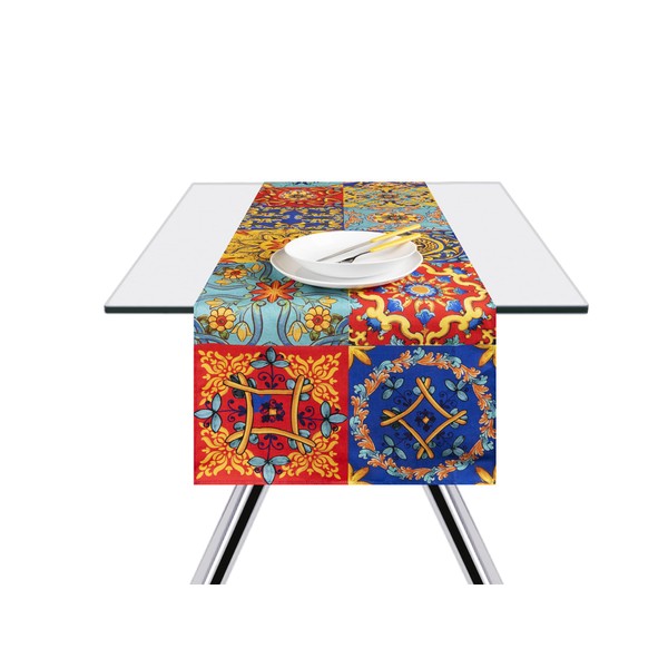 - Trinacria table runner inspired by Sicilian culture and bold, bold colours.